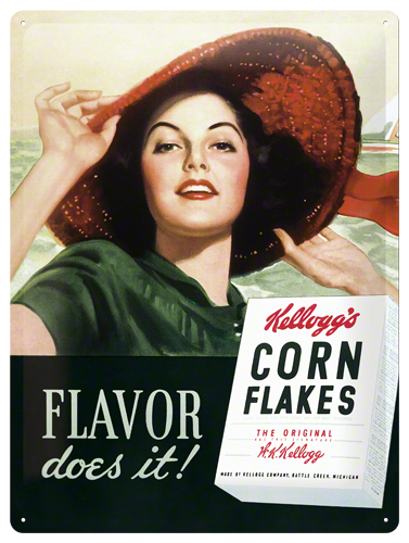 Metalskilt “Kelloggs Flaver Does It” 30×40 cm