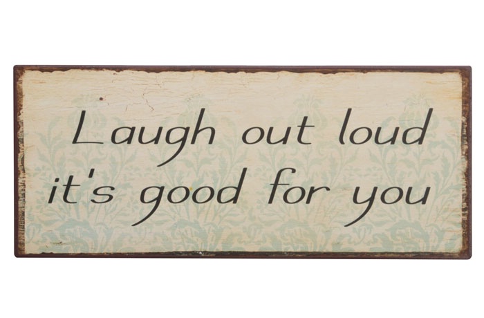 Metalskilt “Laugh out loud it´s good for you” Mål: Længde: 30 cm. Højde: 13 cm.