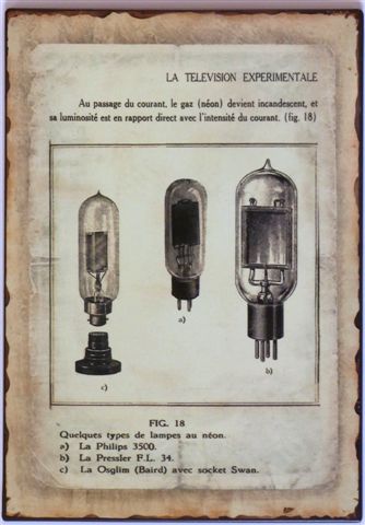 Metalskilt fra Ib Laursen “Philips Le Television Experimentale” tegning af 3 pære med tilhørende fransk tekst. Mål: Bredde: 20 cm Højde: 29 cm.