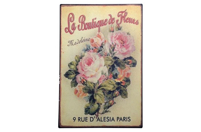 Flot fransk inspireret metalskilt “Metalskilt m/roser La Boutique”