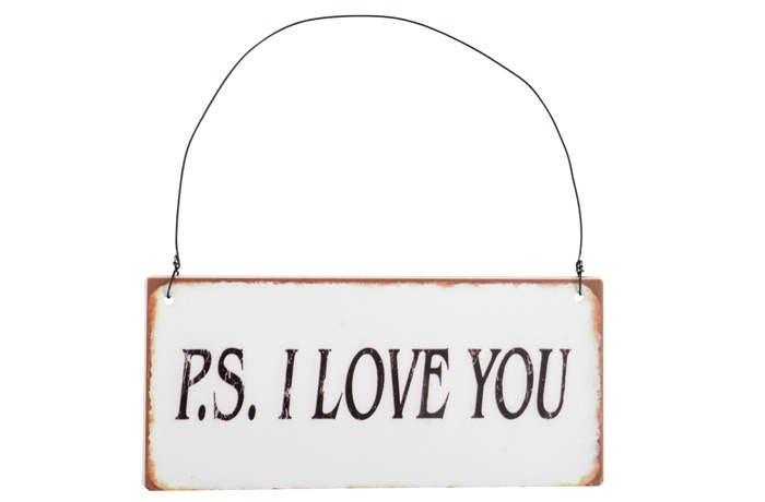 Metalskilt/Hængemærke med teksten “P.S. I LOVE YOU” Mål: Længde: 15 cm. Højde: 7 cm.