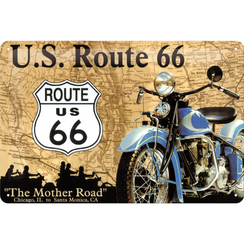 Metalskilt “U.S. Route 66 Map” 20×30 cm.