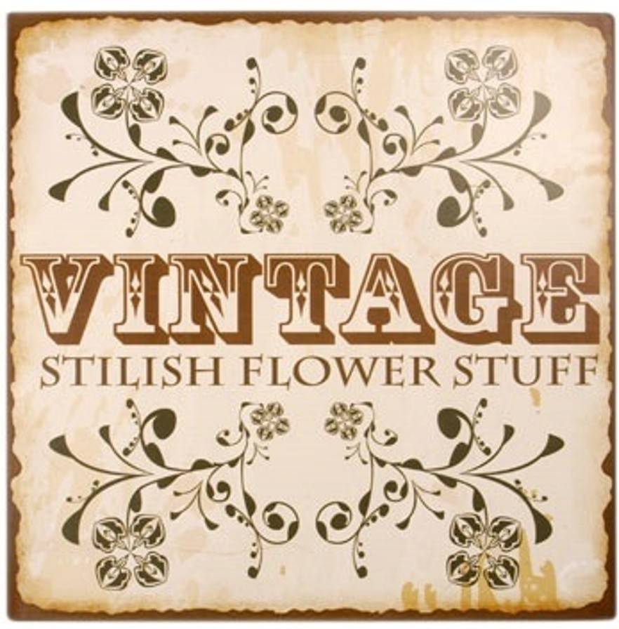 Flot stort metalskilt “Vintage stilish flower stuff”