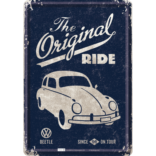 Metalskilt “VW Beetle – The original ride” 10×14 cm.