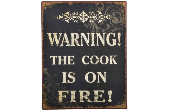 Metalskilt “Warning! the cook is on FIRE”