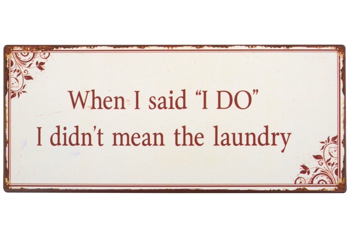 Metalskilt “When I said “I DO” I didn´t mean the LAUNDRY”‘ Mål: Længde: 30 cm. Højde: 13 cm.