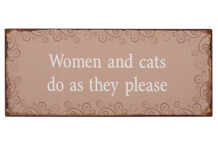 Metalskilt “Woman and Cats, do as the please” Mål: Længde: 30 cm. Højde: 13 cm.