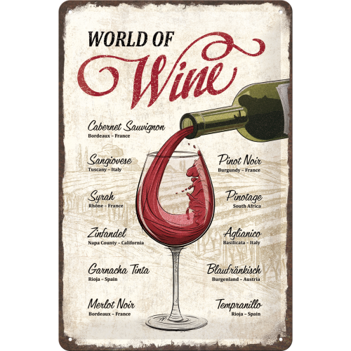 Metalskilt “World of Wine” 20×30 cm.