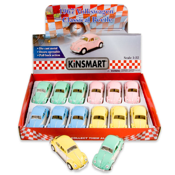 Modelbil VW Classic Beetle, bilen er lavet i metal med mange finde detaljer. Træk bilen tilbage og den kører selv frem. Mål: Længde: 12,5 cm. Højde: 4,6 cm. Bredde: 4,8 cm.