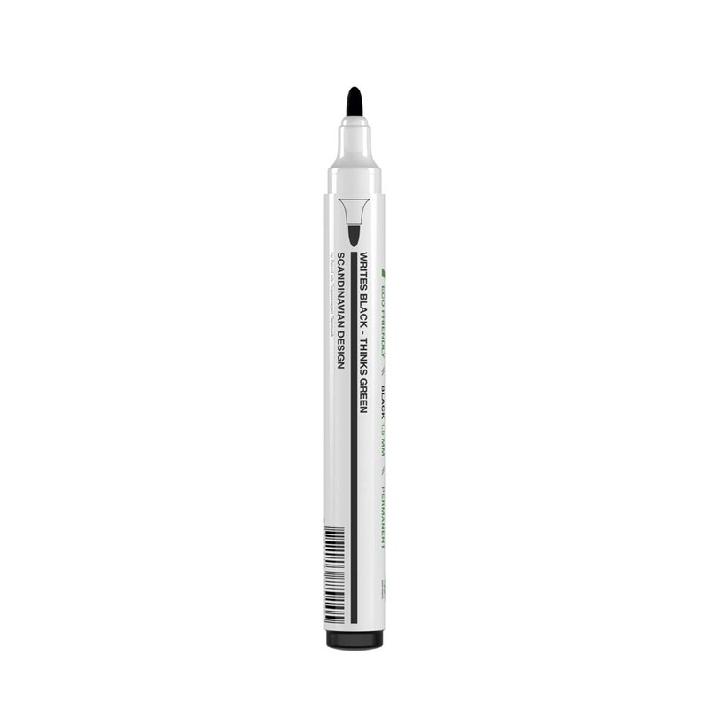Markeren har permanent og hurtigttørrende blæk, samt et hylster i aluminium. Write green, think green..