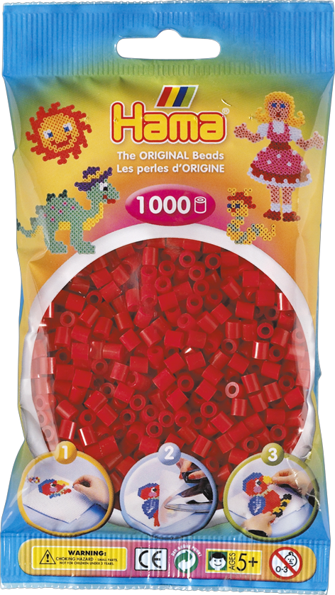 Perler Midi, pose med 1000 stk. Rød
