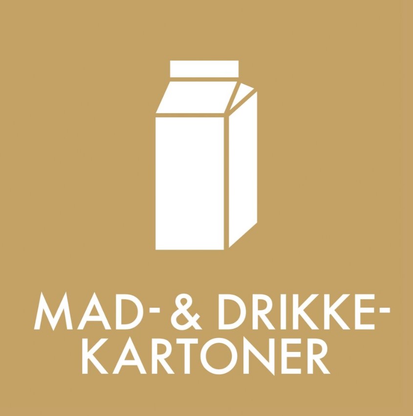 Piktogram MAD- & DRIKKEKARTONER beige, til affaldssortering i slidstærk materiale med afrundede hjørner en enkel og effektiv måde at sikre korrekt kildesortering i hjem, virksomheder og institutioner.
