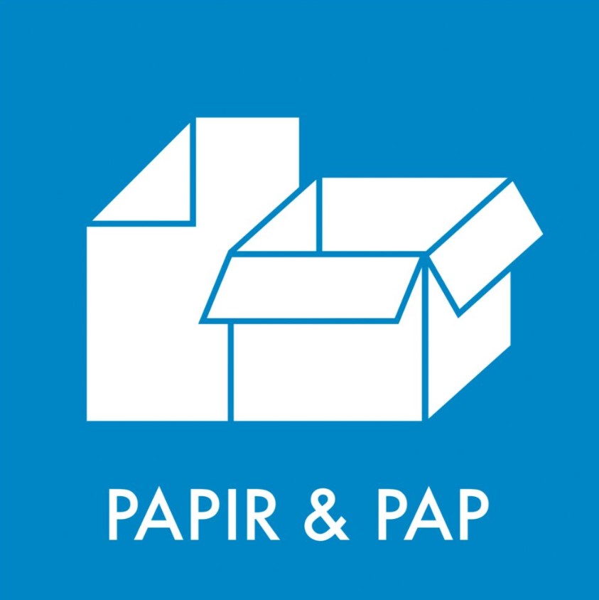 Piktogram PAPIR & PAP 12×12 cm. til affaldssortering i slidstærk selvklæbende materiale med afrundede hjørner en enkel og effektiv måde at sikre korrekt kildesortering i hjem, virksomheder og institutioner.