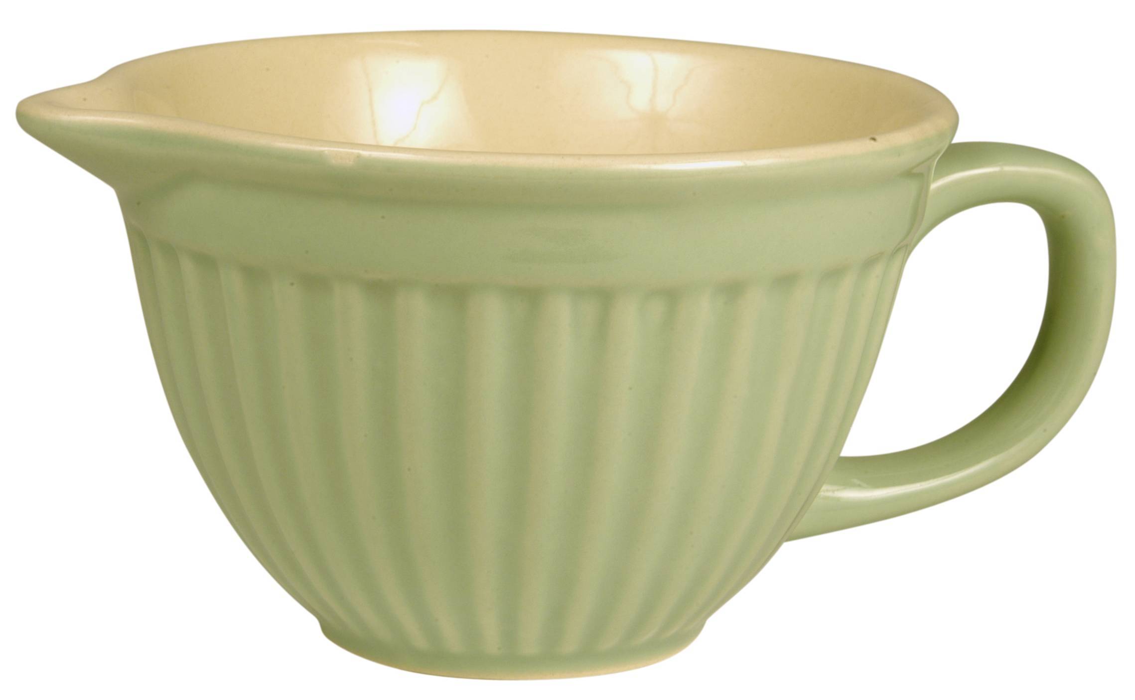 Lille piskeskål 0,3 ltr. med hank og hældetud. Velegnet til mange formål, kan fx. bruges som sovsekande, flødekande og lign. Mål: L:16 cm. B:11,5 cm. H:8 cm.