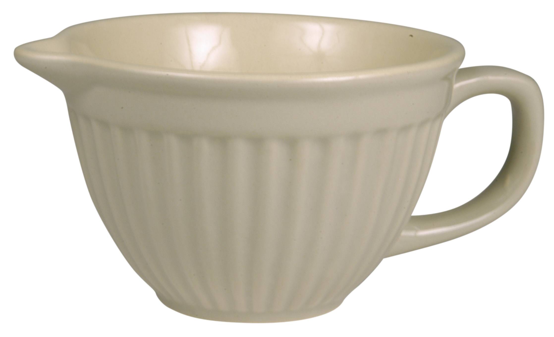 Piskeskål 1,5 ltr.  med hank og hældetud. Velegnet til mange formål, kan fx. bruges som sovsekande og lign. Mål: L:24 cm. B:18 cm. H:12 cm.