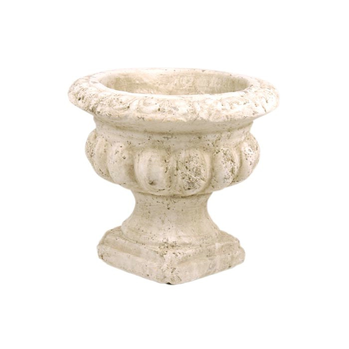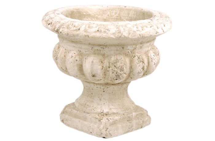 Stor “buttet” pokal i sten-materiale til beplantning, i flot hvid rustik farve i serien “Notre Dame”. Velegnet både inden og udendørs. Mål: Ø:21 cm. Højde: 18 cm.