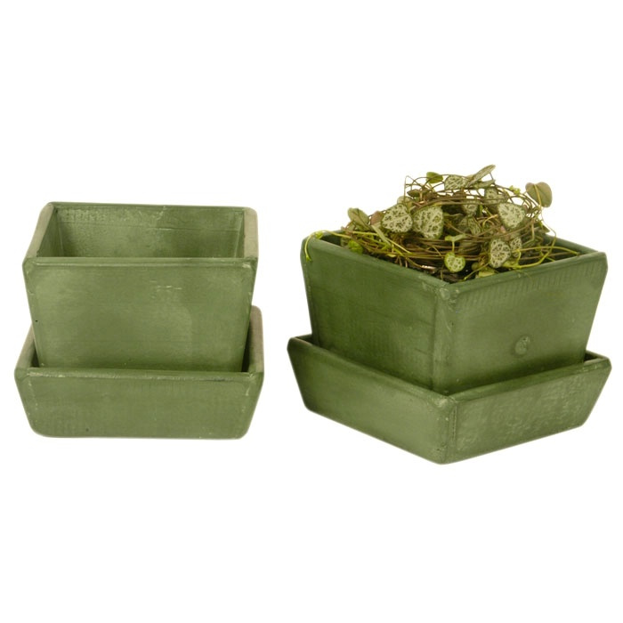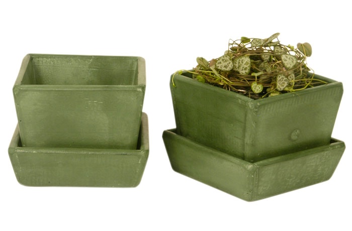 Potte m/underskål (grøn) TILBUD