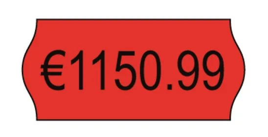 Prisetiket 26×12 mm. Flour Red permanent (1500 stk/rulle) RPLP1226