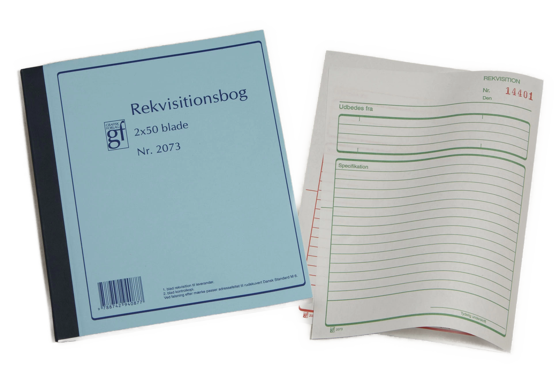 Rekvisitionsbog 2073 med fortløbende numre, med kopi, 2×50 blade.