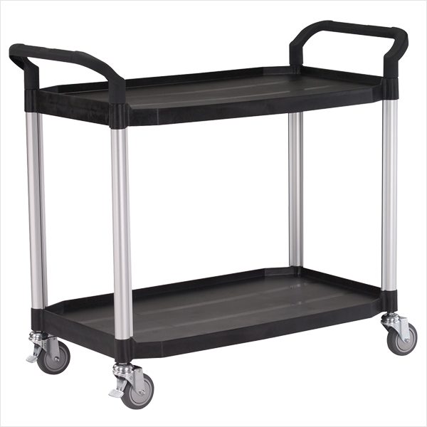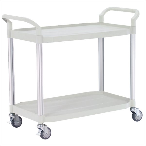 Rullebord med 2 hylder i plast. Rullebordet har 4 drejelige hjul, hvoraf 2 er med bremse. Afstanden mellem hylderne er 55,5 cm. Rullebordet har en kapacitet på 250 kg. Størrelse: 52x110x95 h cm Farver: Sort eller lys grå