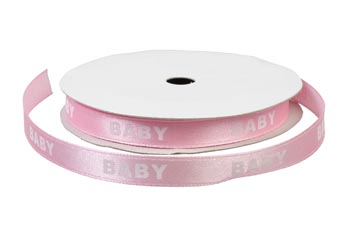 Satinbånd 9 mm. på rulle med ca. 9 mtr. båndet har påtrykt skrift. fås i flere varianter.