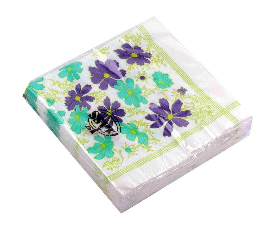 Serviet 3-lags 33×33 cm. pk./20 stk. “Jadegrøn/Lilla blomster”