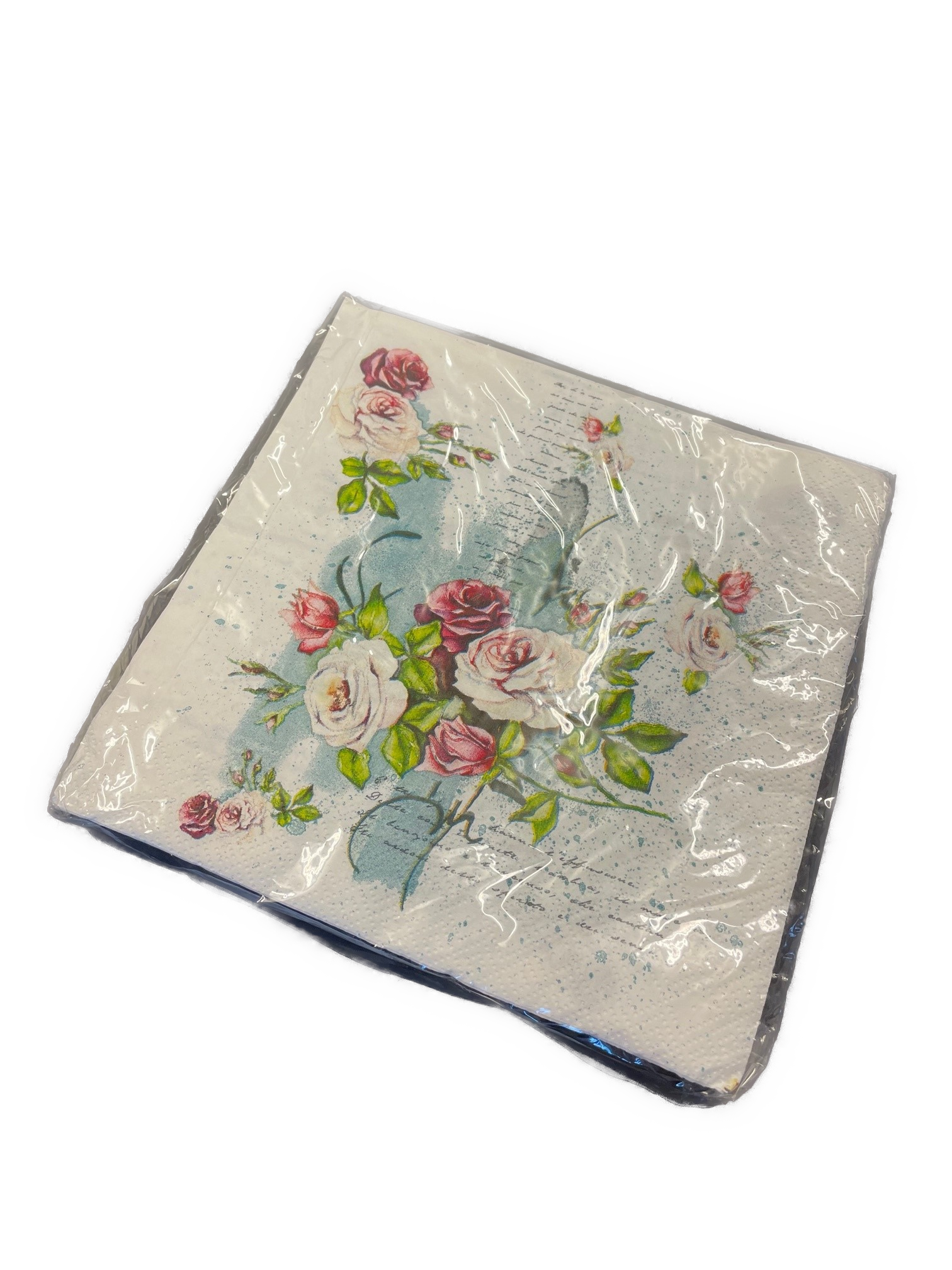 Harmony servietter med ass. Rose motive. 3-lags 33×33 cm. i pakker med 20 stk.