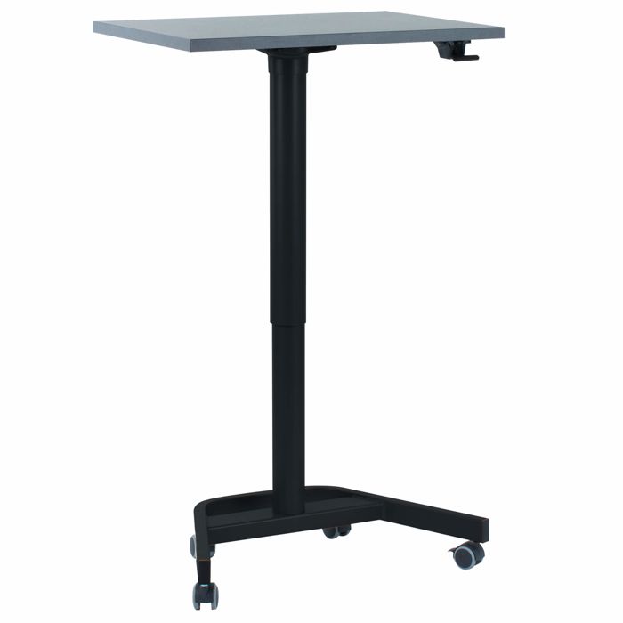 GreenLine Lift hæve sænkebord Vores Single Lift er et lille og praktisk hæve sænkebord. Bordet er uden ledninger og bruger ikke strøm, det er CO2 neutralt da hæve sænke funktionen er styret af en gascylinder, som gør det nemt at betjene. Dette gør også bordet til en god mobil og ergonomisk arbejdsplads, der kan bruges i alle miljøer. Der medfølger hjul til bordet, hvor 2 stk. er låsbare. Hæve sænke funktionen fungerer let og enkelt med et tryk på knappen. Når bordet skal hæves eller sænkes lægges der et let tryk på bordpladen. Hæve sænke funktionen fungerer optimalt med en vægtbelastning på omkring 8-12 kg. Hvis hæve sænke funktionen ikke benyttes har bordet en maks. belastning på 80 kg. Det viste Single Lift hæve sænkebord er med et sort stålstel og en rektangulær bordplade i slidstærk decor laminat med rette ABS kanter, som måler 60×80 cm. Specifikationer Størrelse: 60×80 cm. (DxB) Materiale (bordplade): 22 mm decor laminat Kerne: Spån Farver (bordplade): Hvid, antracit og eg Stel farve: Sort (RAL 9004) Materiale (stel): Stål Med låsbare hjul (2 stk.) Gaslift 2-leddet Leveres usamlet Teknisk Søjle 1: Ø7 cm. Søjle 2: Ø7,7 cm. Stel fod: 44×67 cm. Stel arm: 40×35 cm. Højdejustering: 76-115 cm. Højdejustering med stillesko: 71-110 cm. Højdeinterval: 39 cm. Maks. belastning statisk: 80 kg. jævnt fordelt Maks. belastning i brug: 8-12 kg. Samlet vægt: 16,5 kg.