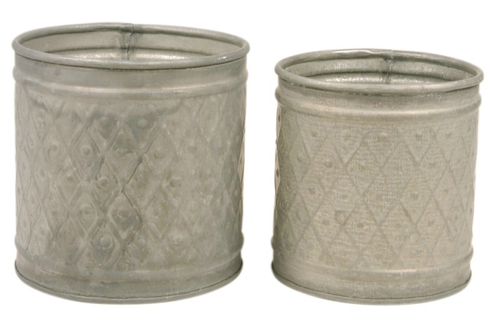 Skjulersæt á 2 stk i metal med mønster. Mål: (Den store) Ø10 cm. Højde: 10 cm