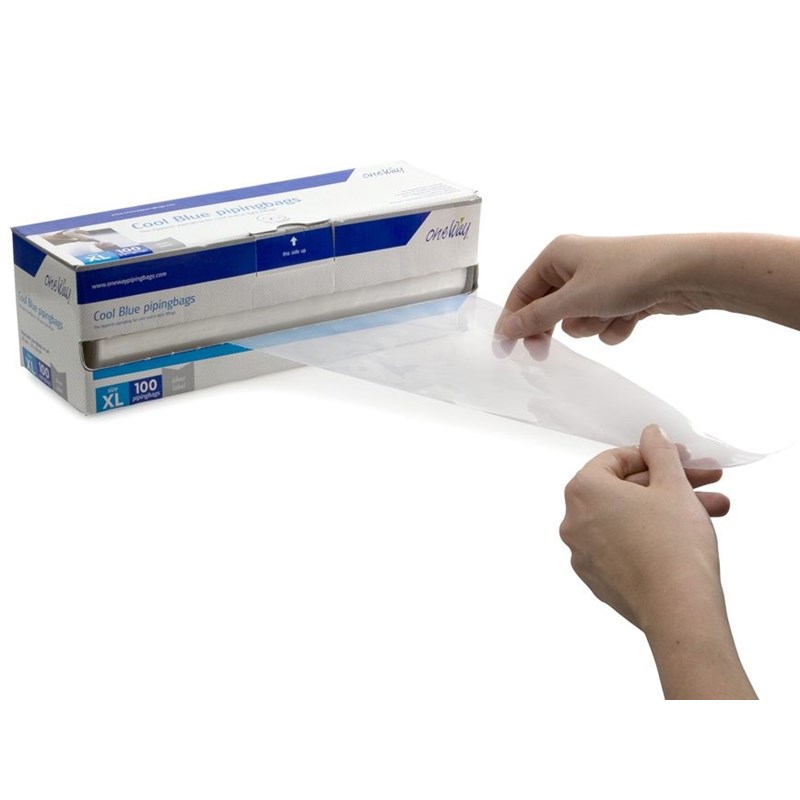 Praktiske sprøjteposer til flødeskum, kagecreme m.m.. Poserne er kraftige og kan indeholde ca. 2,4 ltr. Leveres i æske med ruller á 100 poser