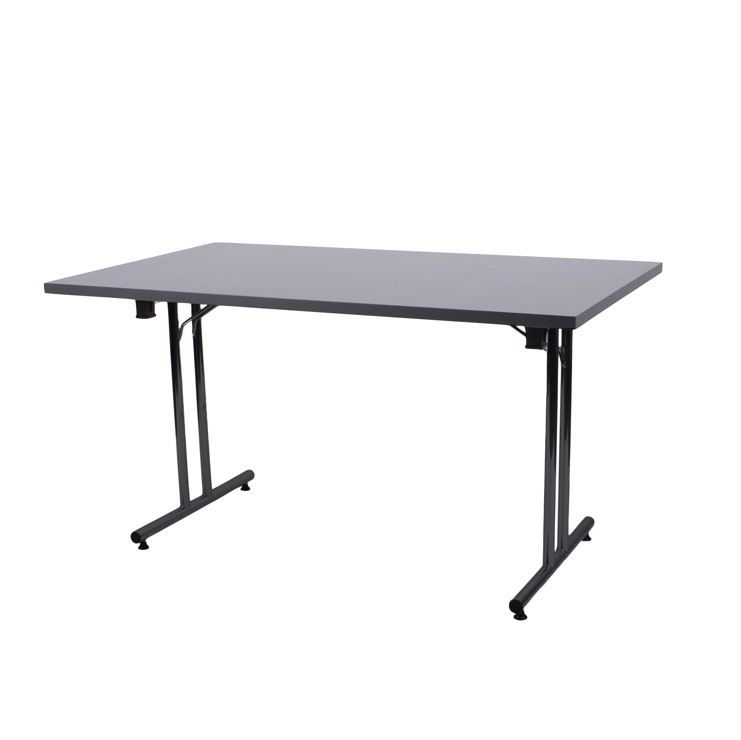 Stabelfix Lux II klapbordet, består af en ekstra kraftig decor laminatplade på hele 28mm, og et robust stel i pulverlakeret sort stål. Bordet kan let klappes sammen, stables og flyttes væk. Dette bord er velegnet til 6 personer og leveres samlet, og klar til brug.  Klapbordet har justerbare fødder som giver øget stabilitet på ujævne overflader. Lagerføres i antracitgrå og til hurtig levering. Men kan bestilles hjem i hvid, eg og bøg. Specifikationer: Størrelse: 80×140 cm. Højde sammenklappet: 11h cm Materiale: Decor laminat Bordplade: Antracit Stel: Sort stål. Højde: 73-74,5 cm. Justerbare fødder: 1,5 cm.
