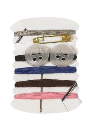 Sysæt bestående af ass. farver tråd med nål + 2 knapper og sikkerhedsnål