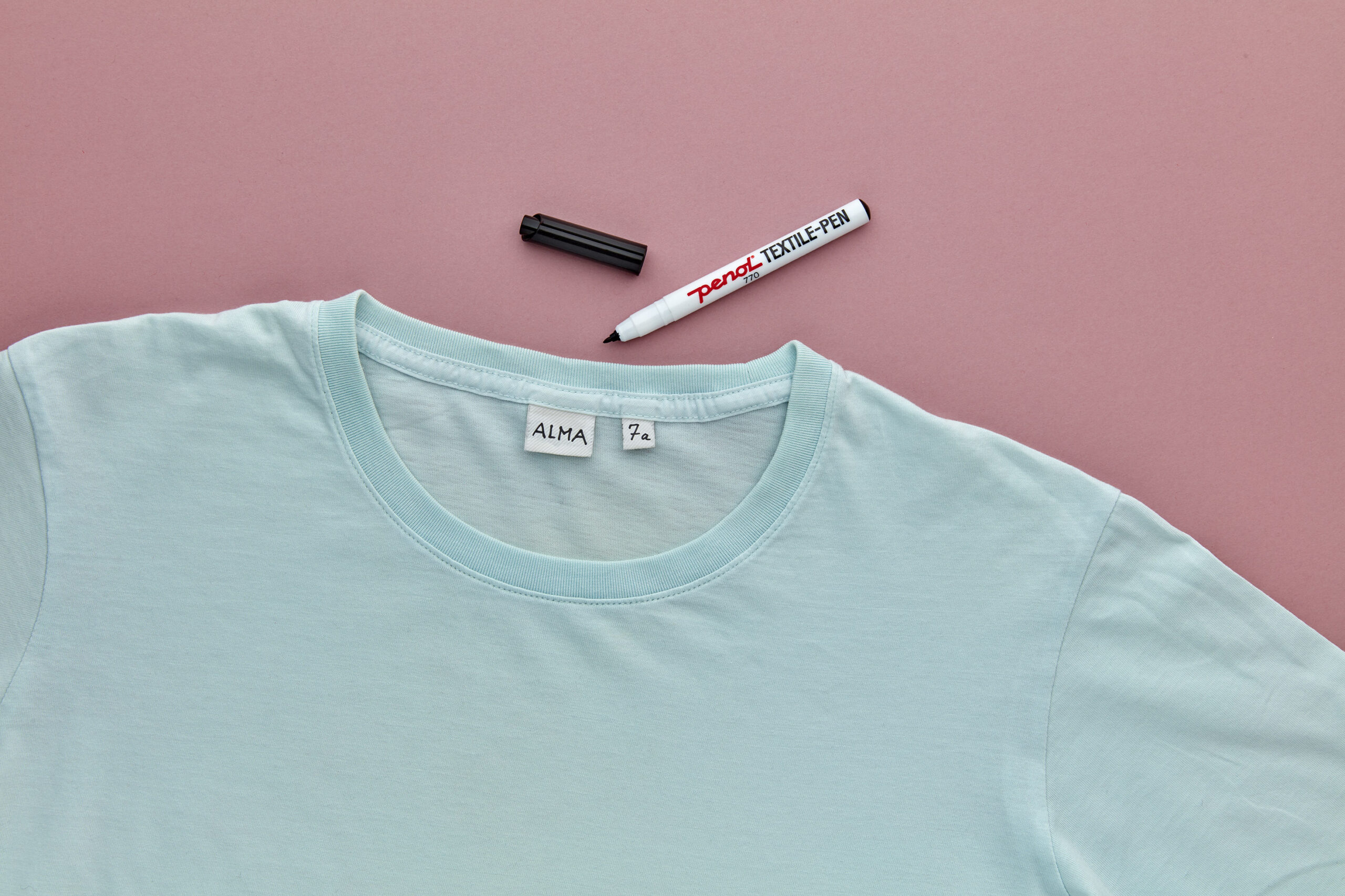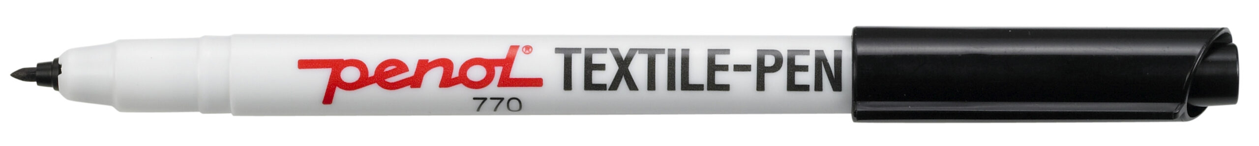 Xylenfri tekstilmarker med tynd spids til præcis navnemærkning af tøj, stof, sko, støvler og tasker – ideel til skole og institution.