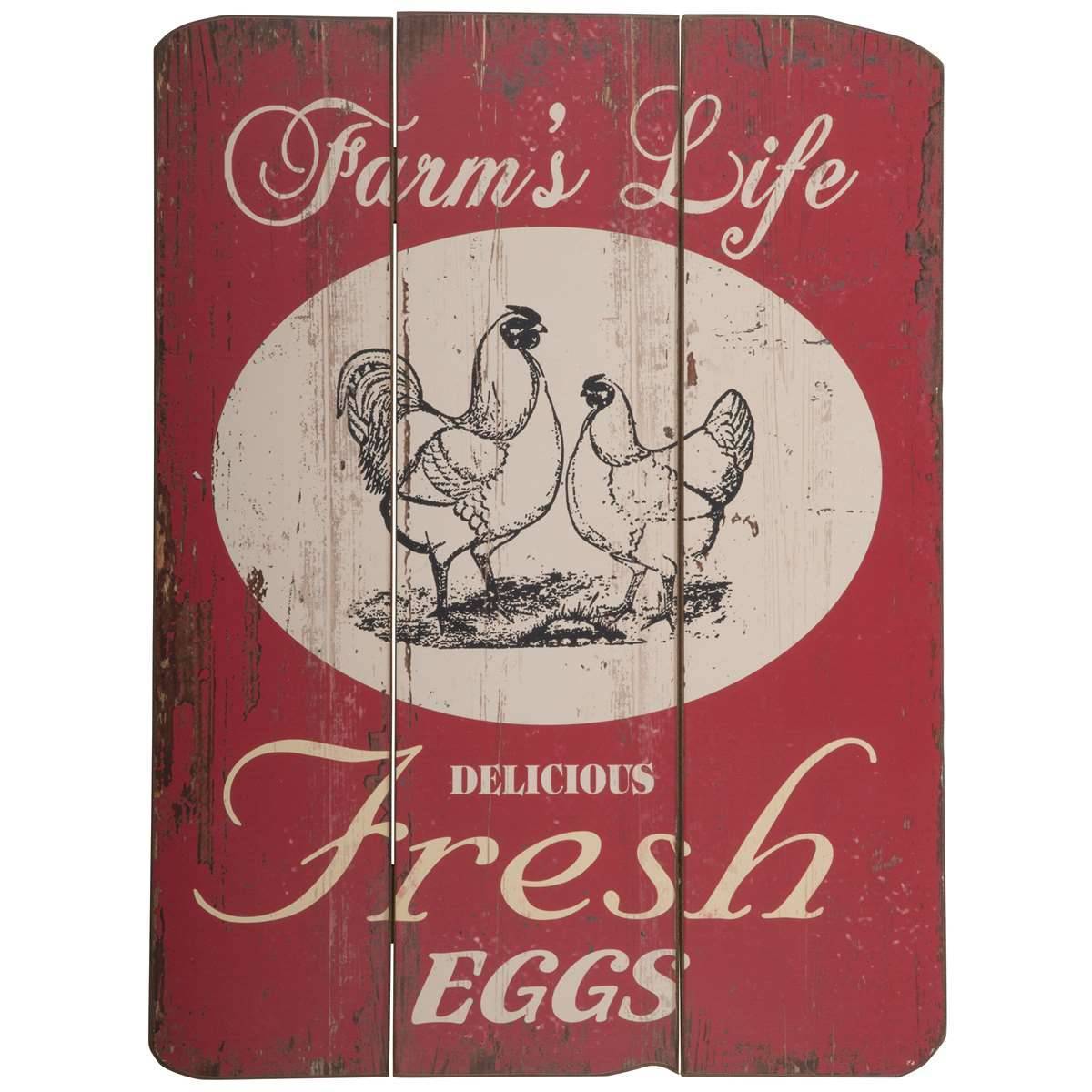 Stort træskilt til ophæng: “Farm´s Life Delicious Fresh Eggs”