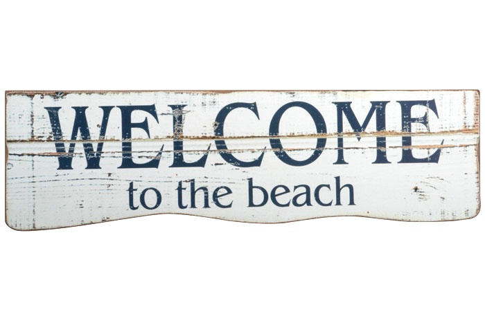 Flot udformet træskilt “Welcome to the beach” Mål: Længde: 45,5 cm. Højde: 13 cm.