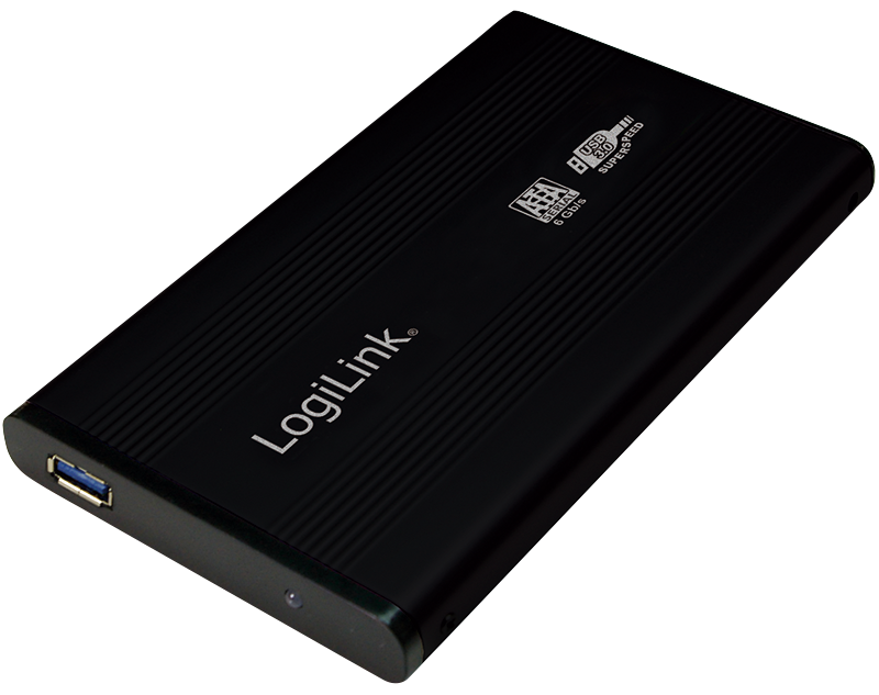 External aluminum case from LogiLink for installation and operation of 2.5 inch S-ATA hard drives. Standard size. Compatible with all notebook hard drives. Connection via PC or notebook via the fast USB 3.0 Super Speed interface. USB stands for Universal Serial Bus and is working with a transfer rate of up to 5 Gbit/s. The connection is simple and the device is recognized by modern operating systems automatically.