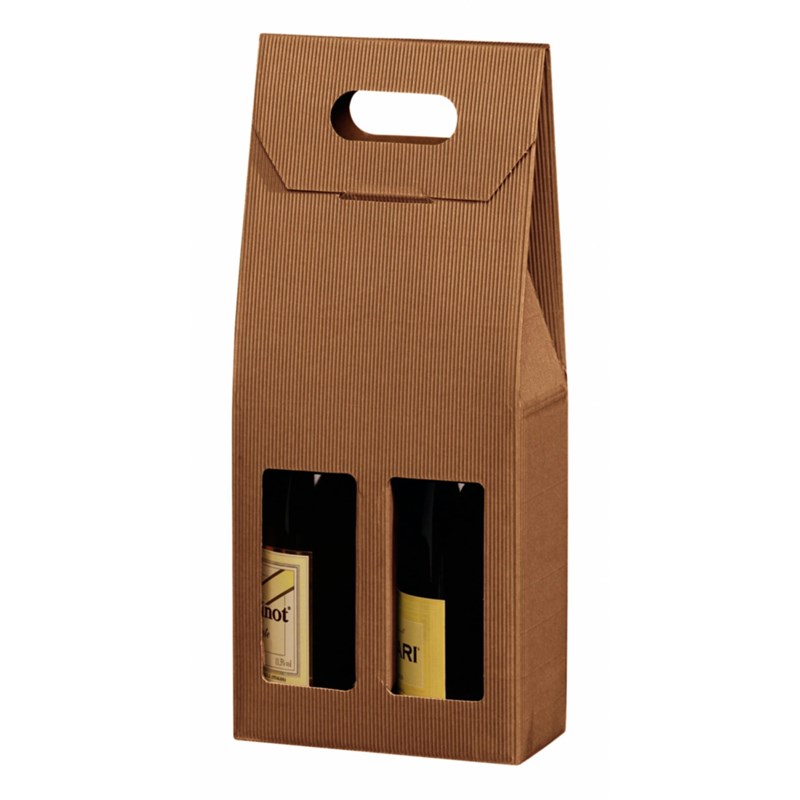 Vinæske i brun bølgepap, med bærehank. Mål: 18 cm. x 9 cm. x 41 cm.