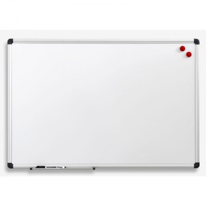 Magnetisk whiteboard tavle 35 x 25 cm. Med aluminiumsramme. Skriv på tavlen med en marker, og sæt ting op på den med magneter. Tavlen kan hænges vandret eller lodret. Incl. 1 pennebakke (20 cm), 1 marker, og 2 magneter.